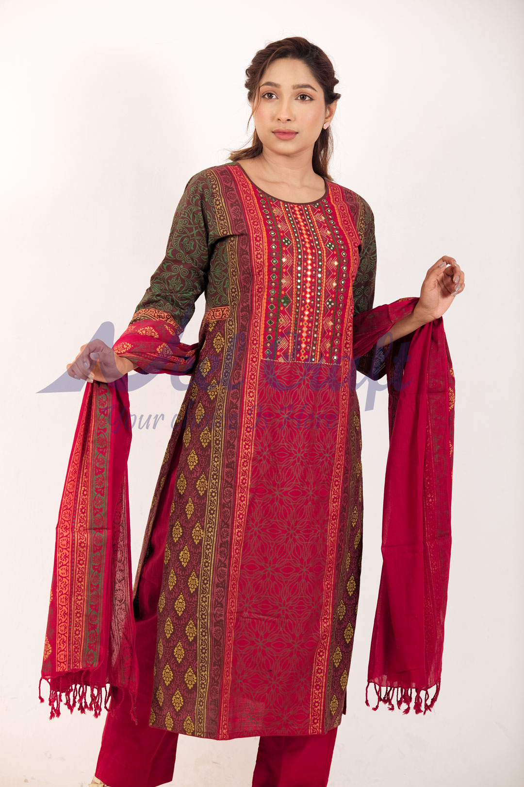 উন্নত মানের আড়ং বা স্লাব কটন , ডিজাইন কটন কাপড় ব্যবহার করা হয়েছে।