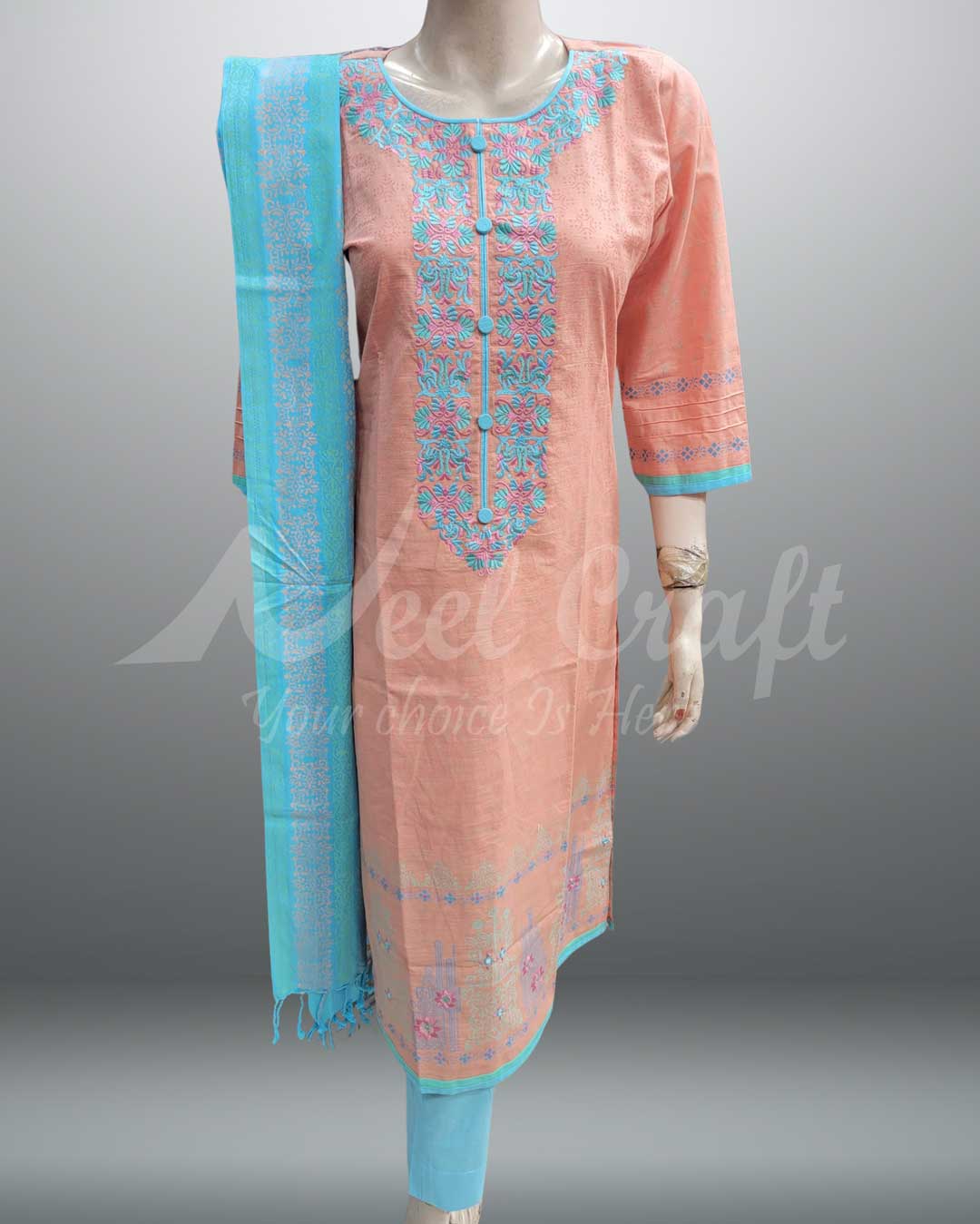 নিজস্ব ফ্যাক্টরিতে সুদক্ষ কারিগর দিয়ে হাতের কাজ, মেশিন এম্ব্রয়ডারি এবং স্থায়ী হ্যান্ড ব্লক করা হয়েছে। নিয়ম-মাফিক ওয়াশ করে ব্যবহার করলে দীর্ঘদিন নতুনের মত দেখাবে।
