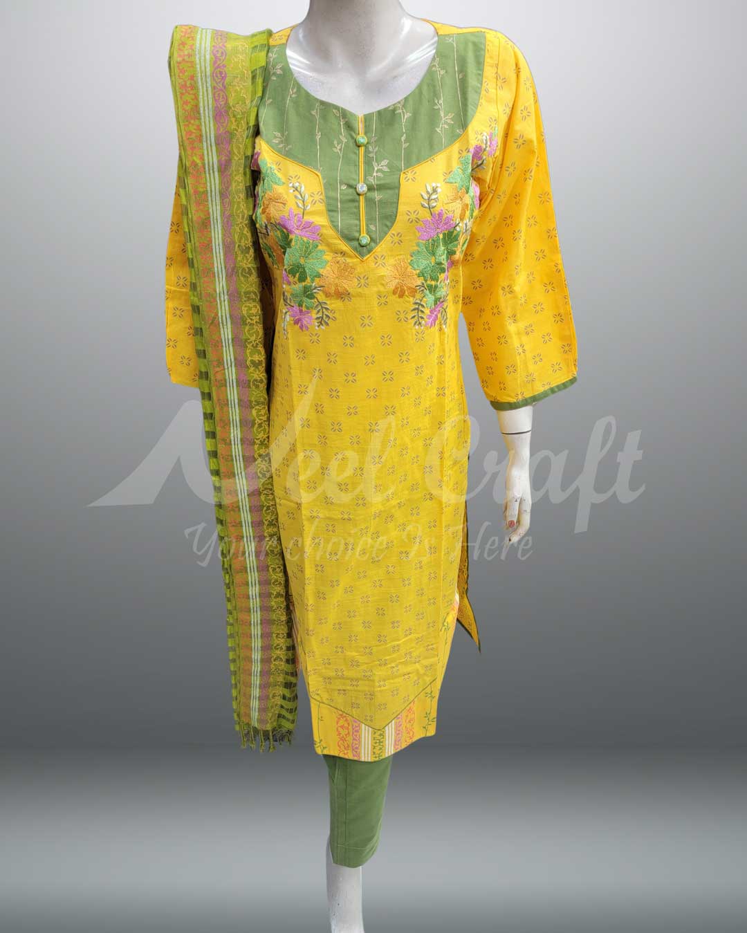 নিজস্ব ফ্যাক্টরিতে সুদক্ষ কারিগর দিয়ে হাতের কাজ, মেশিন এম্ব্রয়ডারি এবং স্থায়ী হ্যান্ড ব্লক করা হয়েছে। নিয়ম-মাফিক ওয়াশ করে ব্যবহার করলে দীর্ঘদিন নতুনের মত দেখাবে।